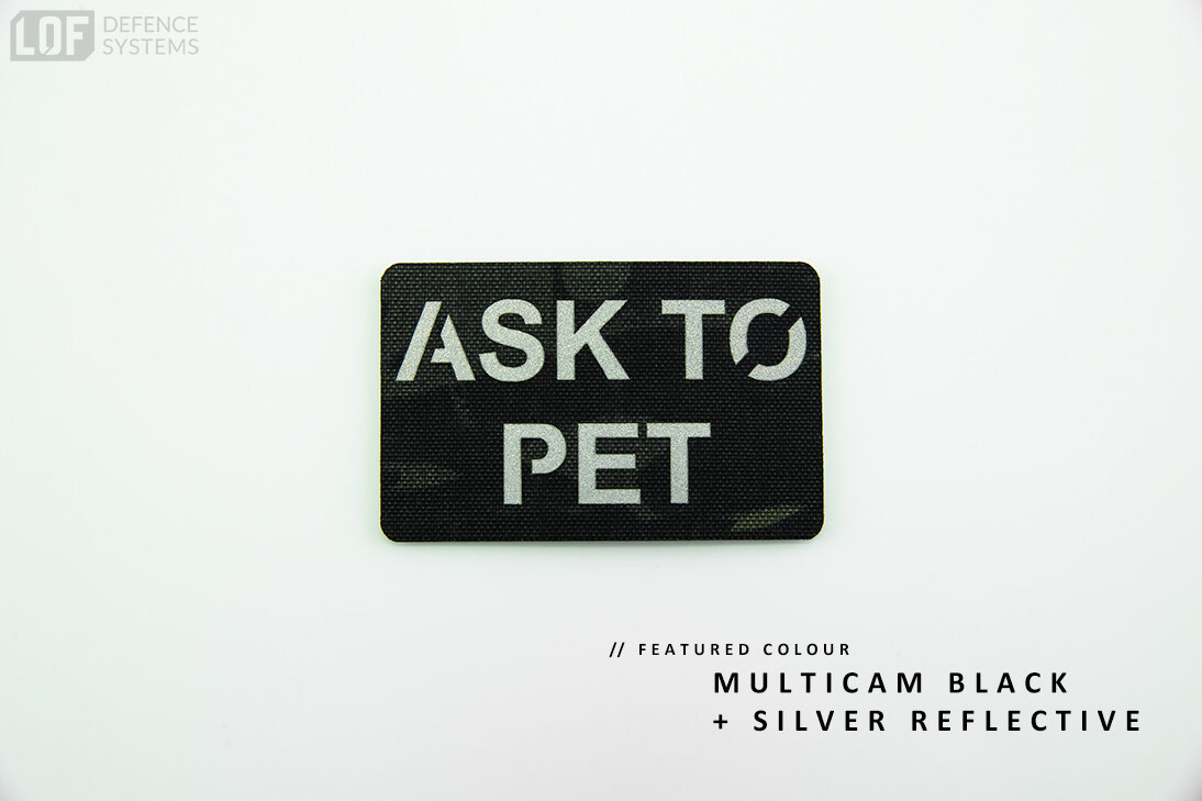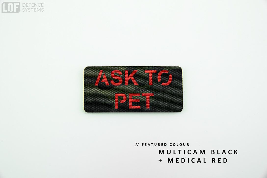Our custom "ASK TO PET" K9 patch features a precision laser-cut design with customizable backing colours for the text. Available in a wide range of colour combinations and four size options, these patches are made to fit seamlessly on collars, vests, harnesses, or bags—ensuring clear communication while maintaining a professional look.