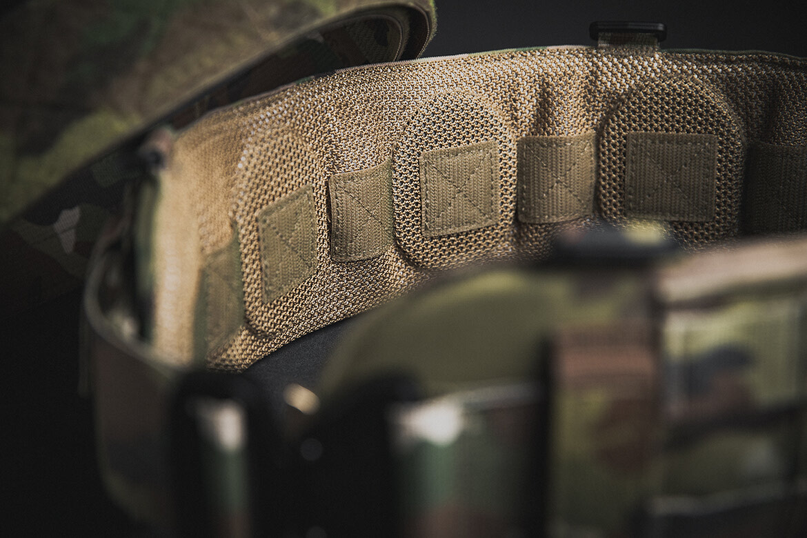 To use this belt as a standalone load bearing equipment platform, select the “No Hook Tabs” option in the dropdown menu above. This removes the internal Velcro tabs, making the belt compatible with most suspender systems. Four 1" acetal hardware loops are integrated for attaching load-bearing suspenders—this is ideal for recce operations where a plate carrier or a chest rig isn’t required.
