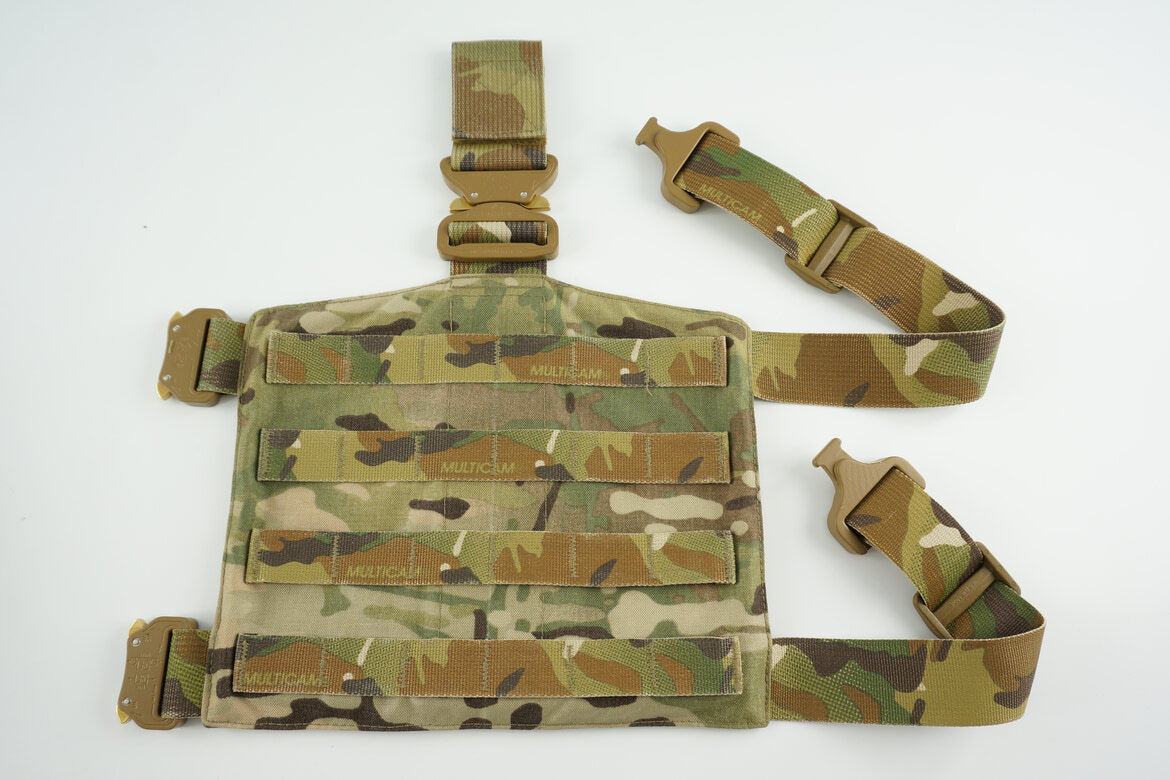 Featuring vertical adjustment to control overall height as well as two adjustable leg straps for retention. The platform is padded with closed cell foam along with a rigid insert to create a stable platform that does not sag with added weight. Six columns and four rows of PALS webbing allows for a variety of MOLLE compatible equipment to be mounted. Upgrade your COBRA® Thigh Rig with GX2 or GX3A soft body armour for added ballistic and trauma protection. Right and Left leg configurations are available to ensure buckles do not cause discomfort when sitting or kneeling.