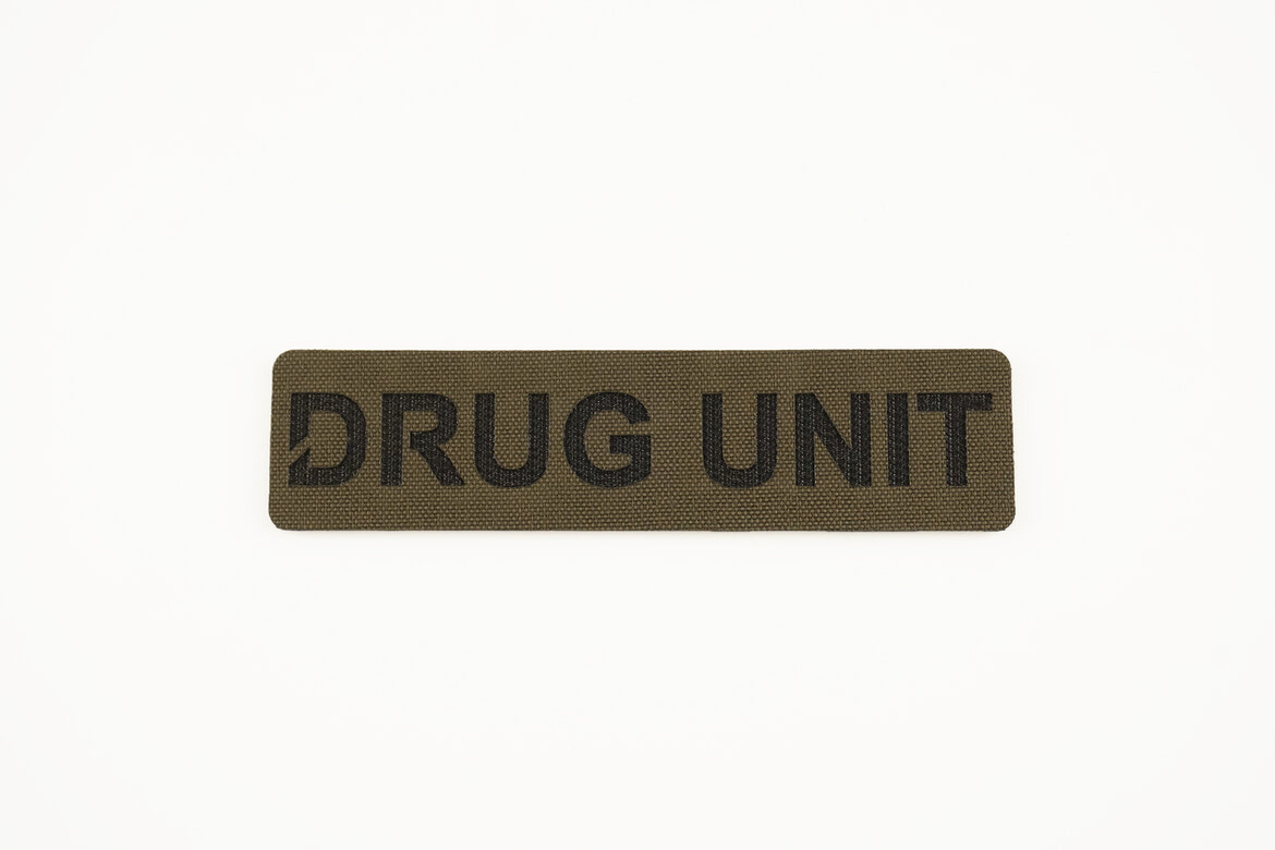 This laser-cut Drug Unit patch was developed for law enforcement professionals working in narcotics detection, drug interdiction, and K9 operations. Crafted from durable MILSPEC 500 Denier CORDURA® and backed with genuine Velcro® hook, this patch ensures a secure fit on vests, K9 harnesses, packs, and body armour. Its clean, highly visible design allows for clear identification during tactical deployments, inspections, or multi-agency operations. Whether outfitting a K9 handler or an entire narcotics division, this patch delivers durability, clarity, and professional-grade performance in the field.