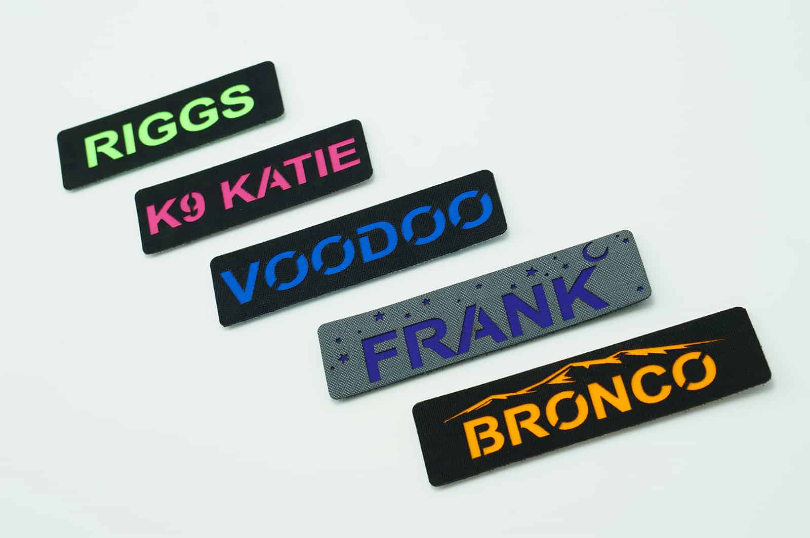 Custom patches are now available with a variety of non-duty colours such as Pink, Purple, Neon Green, Yellow, Red, Orange, and Blue. These colours are only available for lettering or design cutouts.