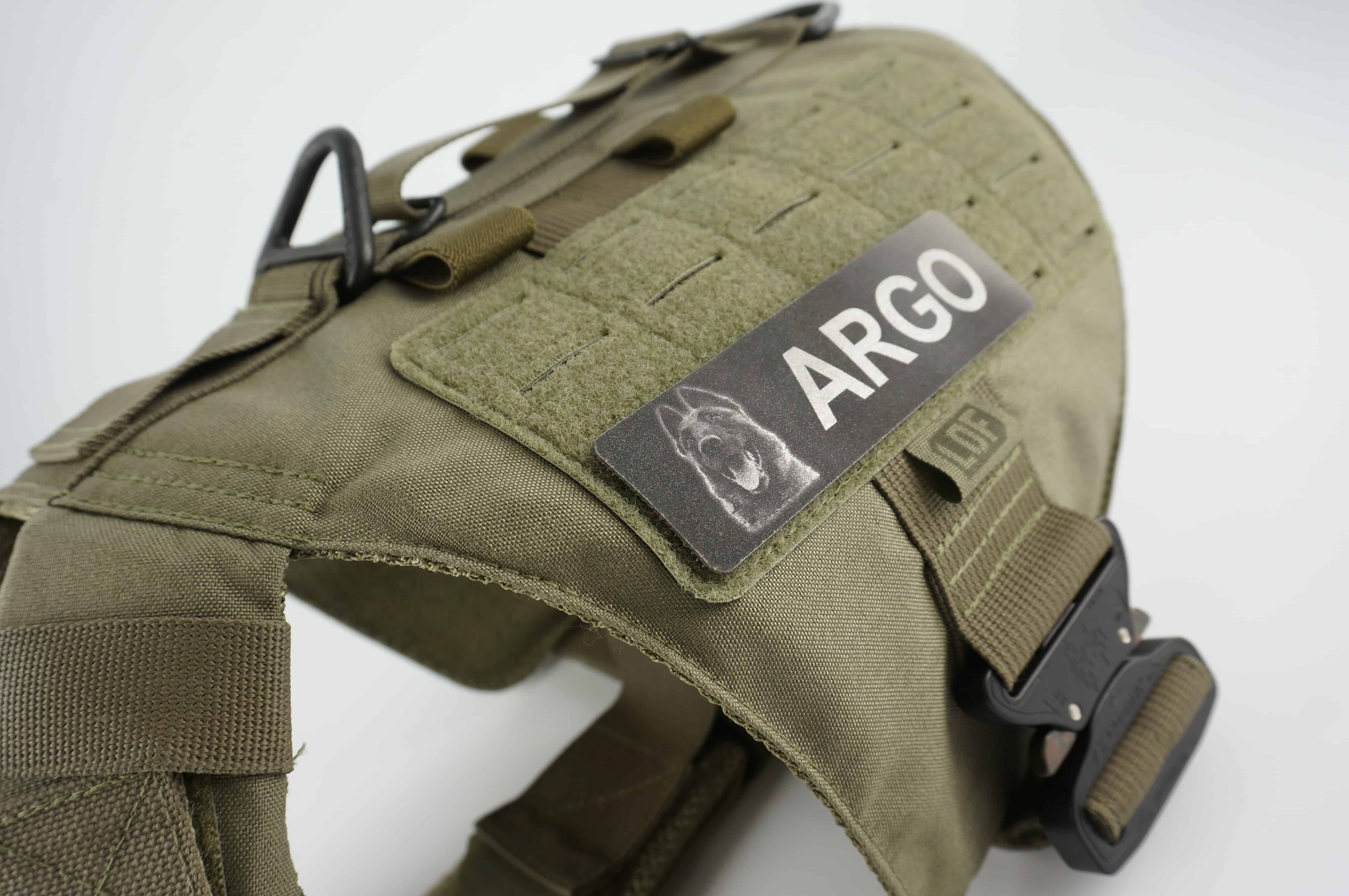 Not only are these patches personalized to your K9, we designed them to be mountable to many common loop platforms such as our K9 StreetFighter Vest, other tracking harnesses, body armour systems and any collar with sewn in loop that is 1.5 inches or wider. If you need a custom sized patch, please contact us for details.