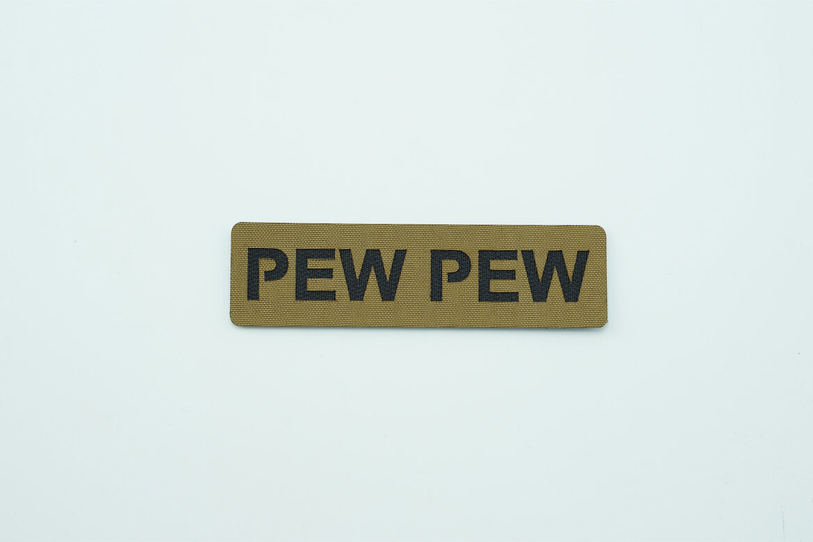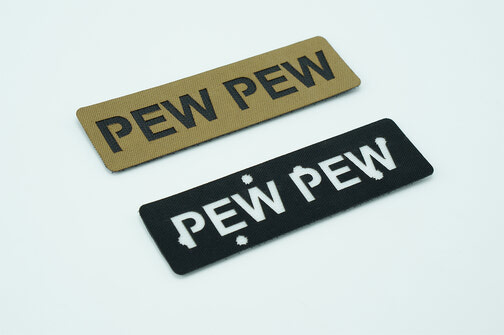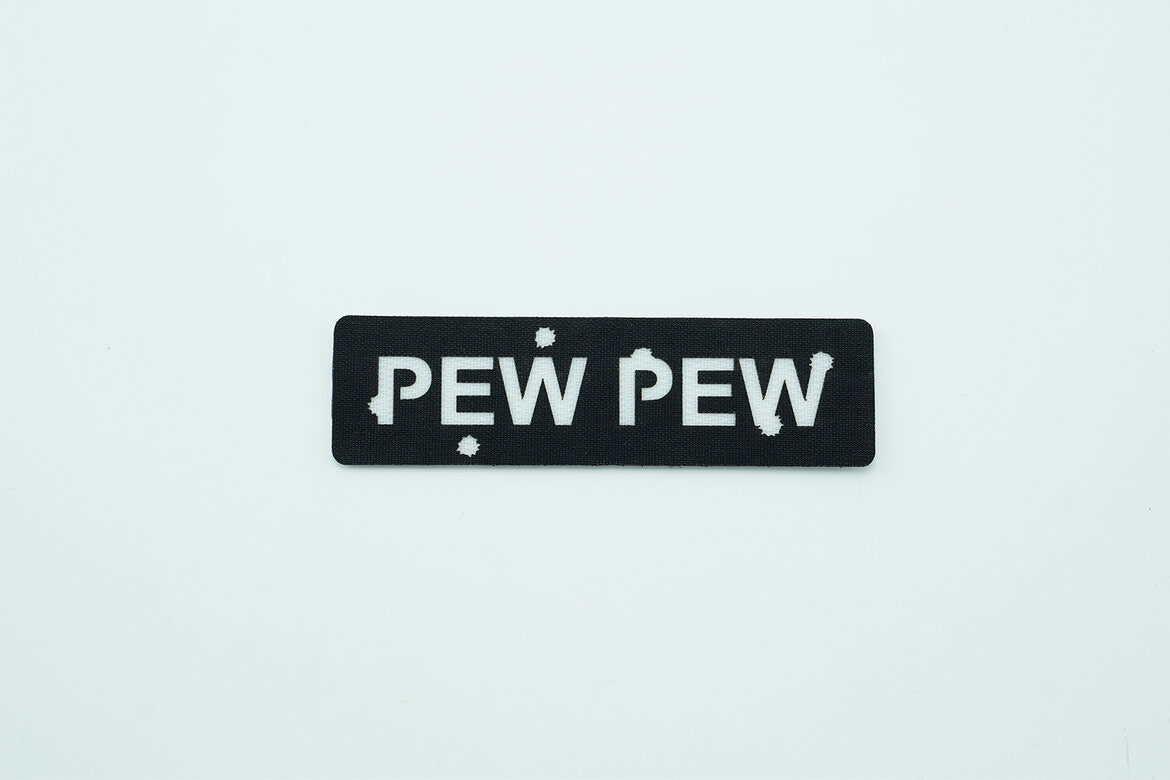 Back by popular demand, our PEW PEW morale patch gives you two bold options—classic plain text or a more expressive version featuring laser-cut bullet holes. Whether you're keeping it subtle or making a statement, both versions are crafted from durable 500D Cordura® and backed with MILSPEC Hook Velcro® for a secure fit on any loop surface. Designed to handle wear and tear, this patch adds a lighthearted edge to your kit without compromising durability or performance.