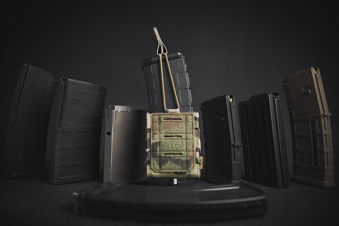 The adjustable design of the pouch accommodates a wide range of rifle magazines, including 20-round 5.56mm mags, 30-round Gen 2 & 3 PMAGs, 7.62 caliber mags, and various bolt-action rifle magazines. This versatility ensures that whatever you carry, the pouch will adapt to fit your needs. Below are examples of the various magazine styles that the Pro-Fusion pouch can accommodate.